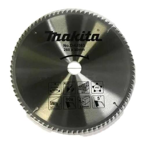 - Itens Inclusos: 1 Lamina de Serra TCT 260mm x 30mm x 80T Makita D-63563
