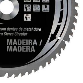Outro ponto de destaque é o diâmetro de 305 mm e o furo central de 30 mm, com anéis adaptadores de 25,4 mm e 15,88 mm inclusos, o que proporciona maior versatilidade de uso em diferentes modelos de serras. A espessura do dente de 2,15 mm e do corpo do disco de 1,65 mm oferecem o equilíbrio ideal entre resistência, estabilidade e leveza, tornando o corte mais eficiente sem sobrecarregar o equipamento.