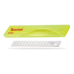 CARACTERÍSTICAS: Indicadas para os estiletes: MOD. KUX035-S/ KUX040-S As Lâminas Starrett têm dimensões padronizadas e também podem ser usadas em qualquer estilete similar. Na reposição, prefira as lâminas com a insuperável qualidade Starrett, que agora são fornecidas em estojo que proporciona absoluta segurança ao operador, uma vez que impede o contato das mãos com a aresta cortante. Conheça a embalagem que trouxe à Starrett prêmios no Brasil e no exterior.