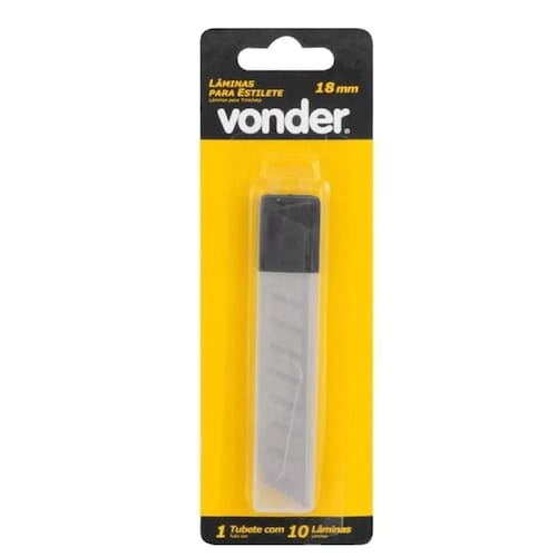 Conteúdo da Embalagem: 10 lâminas Utilizada em estiletes para cortes em geral Lâmina em aço, com furo e rasgo para encaixe. Possui 7 segmentos. DETALHES TÉCNICOS Tipo da lâmina: Reta segmentada Comprimento da lâmina: 108,0 mm Largura da lâmina mm : 18,0 Espessura da lâmina: 0,4 mm CDC : legal: 90 dias Marca: Não Informado