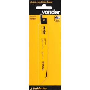 Ref. Fornecedor: 4699150130Marca: VonderConteúdo Embalagem:1 Par de LâminasAplicações e dicas de uso:Indicada para serras sabre a bateria Vonder e DWT, modelos: ISSV 1822 e ISSD 1822.Características Técnicas:Comprimento total da lâmina para serra sabre: 150,0 mm Largura da lâmina para serra sabre: 19,0 mm Espessura: 1,0 mm Número de dentes por polegada: 18 dentes Aplicação da lâmina para serra sabre: MetalGarantia legal: 90 dias Marca: Não Informado