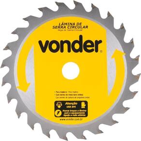 Conteúdo da embalagem1 Lâmina de serra circularAplicações e dicas de usoIndicada para cortar madeiras e derivados. Nunca exceder a rotação máxima rpm - risco de acidente e/ou queima da lâmina. Não cortar madeiras impregnadas com massa ou cimento.Destaques e diferenciaisCorpo em aço carbono com dentes de metal duro/vídea que proporcionam maior vida útil DETALHES TÉCNICOS Diâmetro da lâmina de serra circular: 10 - 250 mm Número de dentes da lâmina de serra circular: 24 dentes Espessura de corte da lâmina de serra circular: 3,2 mm Espessura do corpo da lâmina de serra circular: 2,2 mm Diâmetro do furo da lâmina de serra circular: 30 mm Rotação máxima da serra circular: 5.300 rpm Velocidade periférica: 70 m/s