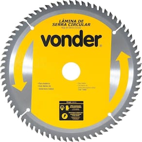 Conteúdo da embalagem1 Lâmina de serra circularAplicações e dicas de usoIndicada para cortar madeiras e derivados. Nunca exceder a rotação máxima rpm - risco de acidente e/ou queima da lâmina. Não cortar madeiras impregnadas com massa ou cimento.Destaques e diferenciaisCorpo em aço carbono com dentes de metal duro/vídea que proporcionam maior vida útil DETALHES TÉCNICOS Diâmetro da lâmina de serra circular: 18 - 450 mm Número de dentes da lâmina de serra circular: 60 dentes Espessura de corte da lâmina de serra circular: 5,0 mm Espessura do corpo da lâmina de serra circular: 3,2 mm Diâmetro do furo da lâmina de serra circular: 30 mm Rotação máxima da serra circular: 2.900 rpm Velocidade periférica: 70 m/s