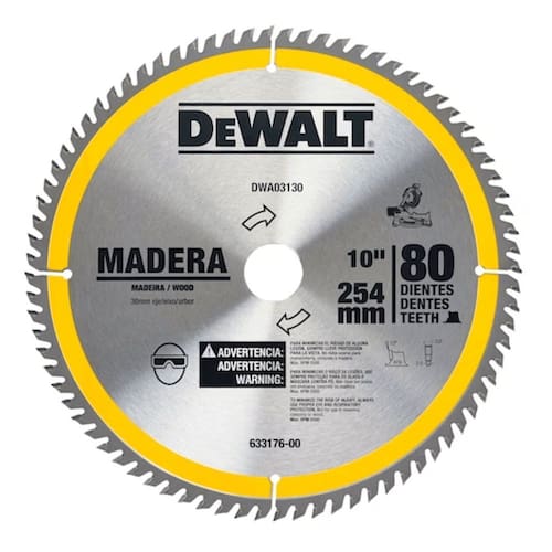 A Lâmina Serra Esquadria 10" 80 Dentes Madeira DWA03130 DeWalt é projetada para oferecer cortes precisos e de alta qualidade em alumínio e materiais não ferrosos. Fabricada com carbeto de tungstênio, garante uma durabilidade excepcional e cortes suaves e rápidos. Seu corpo de aço endurecido evita deformações, assegurando a estabilidade da lâmina durante o uso.