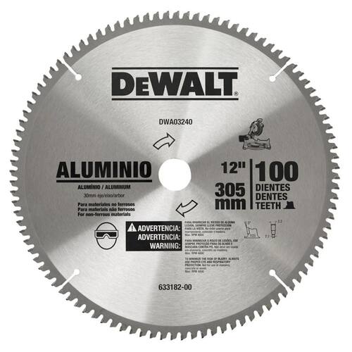 A Lâmina de Serra Esquadria 12" com 100 dentes DWA03240 foi desenvolvida com carbeto de tungstênio para garantir alta durabilidade e desempenho superior. Ela oferece cortes rápidos, finos e suaves, enquanto seu corpo em aço endurecido previne deformações durante o uso.