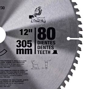 A Lâmina Serra Esquadria 12" 80 Dentes Alumínio DWA03230 é projetada para oferecer cortes precisos e de alta qualidade em alumínio e materiais não ferrosos. Fabricada com carbeto de tungstênio, garante uma durabilidade excepcional e cortes suaves e rápidos. Seu corpo de aço endurecido evita deformações, assegurando a estabilidade da lâmina durante o uso.