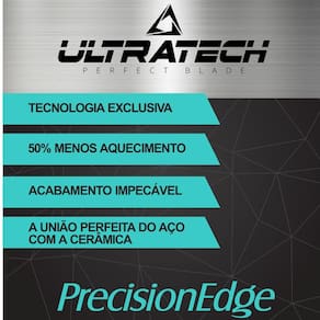 Lâmina ultratech perfect blade 7f Ultratech perfect blade As inovadoras lâminas ultra tech foram fabricadas e desenvolvidas usando a mais nova tecnologia do mercado industrial da atualidade: o ceramic sintering process & powder metallurgy. Esse processo funde o aço inox à cerâmica em uma liga de altissima dureza e qualidade. Bem-vindo ao ao futurol ultra tech precisionedge: a nova linha de lâminas de tosa com tecnologia exclusiva que vai revolucionar o mercado. 50% menos aquecimento Tecnologia exclusiva Acabamento impecável A perfeita união da cerâmica com o aço Instruções para troca das lâminas Para remover a lâmina: Desligar o motor, levantar a lâmina e desconectar da lingueta. Para recolocar a lâmina: Encaixar na lingueta, ligar o motor e rebater a lâmina. Marca: Precisionedge