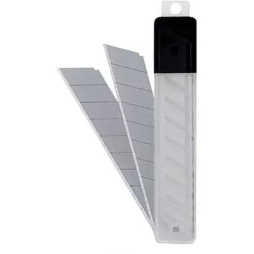 Principais características: - Lâminas para estilete largo 18x100mm - Tratamento antiferrugem - Pontas renováveis - Composição: aço carbono e resinas plásticas - Contém 10 unidades