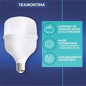 A Lâmpada LED de Alta Potência Tramontina 65W 6500K foi desenvolvida para entregar máxima performance luminosa, aliando tecnologia, durabilidade e economia. Com 65W de potência e temperatura de cor 6500K (luz branca fria), ela oferece iluminação intensa e precisa, ideal para espaços amplos e exigentes como galpões industriais, pátios, estacionamentos, centros logísticos, áreas comerciais de grande porte e oficinas.