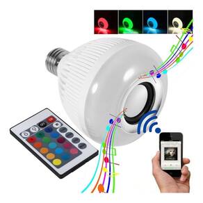 Com uma combinação perfeita, a lâmpada led possui efeitos luminosos incríveis e conta também com uma caixa de som de potência 3w rms.Possui um led com potência de 6w, fornecendo uma iluminação de alta qualidade, além disso é 80% mais econômica.Sua conexão deve ser feita por bluetooth, assim você pode colocar as suas músicas preferidas ou até mesmo montar uma playlist e deixar rolando.Para facilitar ainda mais, o comando da lâmpada é feito por controle remoto, sendo possível aumentar ou diminui a intensidade da luz e avançar ou retroceder as músicas.Perfeita para iluminar, decorar e animar qualquer ambiente.Informações técnicasProduto: Lâmpada Led RGBPotência do led: 6wSoquete: E27Cores: branco frio, branco quente (amarelado), azul, verde, rosa, roxo e vermelhoConexão bluetooth: 3.0Potência alto falante: 3w rmsConsumo: 12w rmsVoltagem: AC 100240v (bivolt)Frequência: 50hz/60hzResposta de frequência: 135hz15khzAlcance máximo: 10 metrosPossui caixa de somComando por controleDimensões: 10 x 15 cmPeso: Aproximadamente 190gItens inclusos1 Lâmpada Led RGB com Caixa de Som1 Controle Marca: Injoi