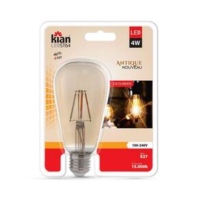 LÂMPADA BULBO LED FILAMENTO ST 64 Cor: Branco Tamanho: P LÂMPADA BULBO LED FILAMENTO E27 ST 64 KIAN Requinte e sofisticação são alcançados quando se aplica a linha de lâmpadas retrô Filamento de Carbono. Dimerizáveis, com bulbos de diferentes formatos, esta linha traz o que existe de mais atual na aplicação de lâmpadas com fins decorativos. Design retrô para aplicação decorativas, versatilidade de formatos, excelente reprodução de cores, Ideal para decorar ambientes. Especificações técnicas: * Modelo Lâmpada Filamento de Carbono ST64 40W 2400K - Kian 220v * Potência 4W * Cor Amarela - 2400k * Temperatura de Cor 2.400k Âmbar * Branco Quente * Fluxo Luminoso Decorativo * Base E27 * Vida Mediana 2.000 horas * 3 Meses * Dimensões 143X64mm Atenção, Imagens meramente ilustrativas: - Não nos responsabilizamos por montagens e instalações mau realizadas. Certifique-se que de que algum eletricista faça a montagem e instalação do produto de forma correta. - O produto pode sofrer pequenas alterações de cores. Os demais itens e objetos de decoração nas imagens, não acompanham o produto. - Favor conferir mercadoria no ato do recebimento. Marca: Não Informado Ean: 7899710010477