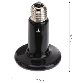 Potência 100W e nas voltagens 110V ou 220V.Escolha a mais adequada para suas necessidades.A Lâmpada de Cerâmica para Terrários Lorben, feita em cerâmica sólida, possui um excelente efeito de aquecimento em criadouros de répteis, anfíbios, em galinheiros, etc.Produz energia térmica infravermelha natural, sem nenhuma emissão de luz no ambiente e pode ficar ligada 24 horas, pois não atrapalha seu sono.Seu material cerâmico é resistente à impactos e adequado para ambientes úmidos (pode entrar em contato com a água). Sua tecnologia de ponta faz com que a eficiência térmica seja superior a 99%.É simples e fácil de instalar: basta aparafusá-la em um soquete padrão de porcelana E27.- Fabricado em cerâmica de alta qualidade- Eficiência térmica superior a 99%- Resistente à água e impactos- Não emite luz e não perturba seu horário normal de sonoMarca: LorbenMaterial: CerâmicaCor: PretoTipo de Soquete: E27Potência: 100WVoltagem: 110V ou 220VAVISO:- É natural que a base da lâmpada fique vermelha. Tenha cuidado para não tocar na lâmpada, pois há risco de queimaduras graves na pele- Mantenha longe do alcance de crianças- Recomendamos que a instalação seja feita por um profissional- Não utilize em luminárias de mesa- Utilize somente bocal cerâmico- Verifique a tensão antes de ligar- Recomendamos o uso de um estabilizador de energia para manter a vida-útil da lâmpada.Tamanho do produto: 10x7x5cmPeso do produto: 140gTamanho da embalagem: 30x20x9cmPeso da embalagem: 195gInclui:1 Lâmpada de Cerâmica AquecedoraCódigo do produto: GT6066Imagens ilustrativas. As tonalidades podem variar.