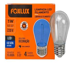 Lâmpada De Filamento Foxlux Azul 220V Lâmpada LED Filamento Amarelo 1W E-27 Kit 4 Unid FOXLUX Deixe seus ambientes mais aconchegantes e sofisticados com a Lâmpada LED Filamento Amarelo da Foxlux, que une o charme do estilo vintage ao desempenho moderno da tecnologia LED. Ideal para uso em decoração interna ou externa, este kit com 4 unidades proporciona uma iluminação suave e acolhedora, perfeita para valorização de salas, varandas, lojas, festas e eventos temáticos.