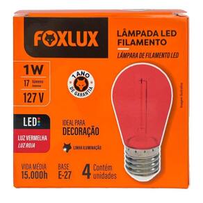 CARACTERÍSTICAS TÉCNICAS FOXLUX: - Potência de 1W com baixo consumo energético. - Fluxo luminoso de 45 lumens emitindo luz amarela decorativa. - Base padrão E27 compatível com diversos tipos de luminárias. - Bulbo transparente com filamento aparente para visual retrô elegante. - Garantia de 1 ano contra defeitos de fabricação.