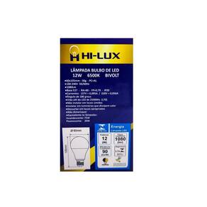 base : e27 tensão : bivolt automático 100v - 240v ângulo de abertura : 180 graus potência : 12w fluxo luminoso : 1080 lumens temperatura de cor : 6500k emissão de cor : branca equivalência : incandescente 75w / fluorescente 20w dimensões : 108mm x 60mm Marca: Hi-Lux