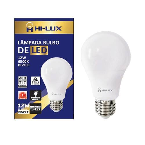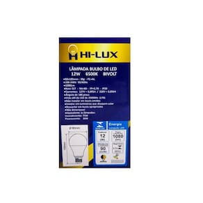 Lampada de led 12w 6500k Cor: branco - frio Lampada de led 12w 6500kn lâmpada led bulbo 12w 6500k A linha de lâmpadas led hilux é indicada para retrofit de lâmpadas incandescentes ou fluorescentes, em diversos tipos de aplicações para ambientes internos. Propriedades lâmpadas certificadas pelo inmetro. formato às lâmpadas incandescentes tradicionais. corpo em policarbonato branco e difusor em policarbonato branco leitoso. possui driver interno isolado. Características de funcionamento temperatura ambiente: -5c a 40c. tensão de entrada: 100v a 240v. Especificações técnicas base : e27 tensão : bivolt automático 100v - 240v ângulo de abertura : 180 graus potência : 12w fluxo luminoso : 1080 lumens temperatura de cor : 6500k emissão de cor : branca equivalência : incandescente 75w / fluorescente 20w dimensões : 108mm x 60mm Marca: Não Informado Ean: 0609963686223