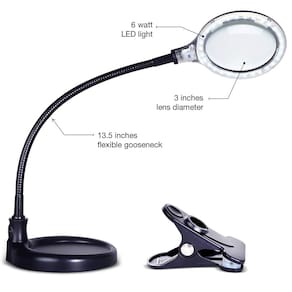 - Lâmpada de mesa com lupa ajustável com pescoço de ganso: a lente de vidro tem um pescoço de ganso ajustável e flexível de 34,3 cm, pode ser ajustada para cima e para baixo, você pode manter a lupa acesa para um trabalho próximo em qualquer ângulo, liberando as duas mãos. Adequado para reparar eletrônicos, soldagem, crochê, pintura, joias, facial, manicure, quebra-cabeças, etc.