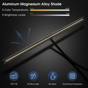 - ?Fonte de luz luminosa, ultra ampla e brilhante?Nossa lâmpada de mesa adota a mais recente tecnologia LED, sem luz azul e sem brilho, a fonte de luz suave protege seus olhos da fadiga. A faixa de luz LED ultra ampla de 80 cm oferece o mesmo brilho de uma lâmpada incandescente de 80 W, e a fonte de luz natural e direcional pode cobrir toda a bancada de trabalho