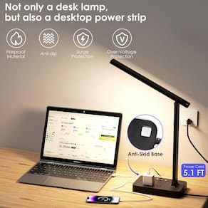 - [Várias funções de carregamento]: a lâmpada de mesa está equipada com 1 porta USB-A, 1 porta de carregamento tipo C (5V/2,1A) e 2 tomadas de segurança CA. Você pode carregar seus telefones celulares, tablets, laptops e outros dispositivos eletrônicos simultaneamente. Mantém seu espaço de trabalho limpo