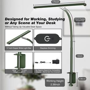 - Modelos de tamanho grande e ajuste: nossa luminária de mesa possui uma barra de lâmpada extragrande de 43 cm que pode iluminar totalmente seu espaço de trabalho, fornecendo brilho suficiente para concluir qualquer tarefa. É adequado para uma altura máxima de trabalho de cerca de 78.7 cm, tornando-o compatível com monitores de 76.2 cm (retrocompatível com 73.7 cm, 68.6 cm, 61.0 cm e outros monitores). Lâmpada de mesa de escritório com fácil instalação e um design de grampo de metal ajustável, os clipes de metal resistentes podem suportar mesas de até 6 cm de espessura