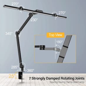 O suporte da braçadeira mantém a lâmpada de mesa alta estável e suporta até 2,5 polegadas da mesa. E o acolchoamento de silicone nos suportes é macio, mas firme, eles não arranham sua mesa. A lâmpada de fixação é uma construção muito sólida, oferece resistência suficiente para garantir que os braços não se movam facilmente ao tocá-los acidentalmente.