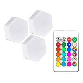Ligue-os e controle-os com um toque (com o toque do dedo) ou manipule-os à distância com o controle remoto. Possui diferentes modos e tons de luz com os quais você pode desfrutar de suas diferentes transições multicoloridas, como modo flash, estroboscópio, desbotado, suave ou fixo. Você também pode definir diferentes níveis de intensidade.\ n\ nEspecificações:\ N-Temperatura de cor: 65000k\ N-Operação: 3 pilhas AAA por painel (NÃO INCLUÍDAS)\ N-Alcance do controle remoto: 5-8 metros\ N Inclui: - 3x painéis hexagonais\ n-1x Controle\ n-3x Suportes de encadernação