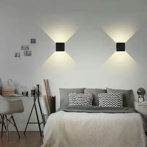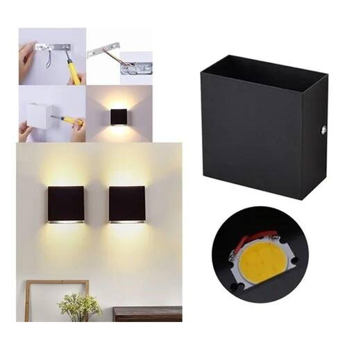 Estilo: contemporâneo e moderno. Iluminação: para cima e para baixo Local de instalação: parede. Material: Alumínio. Fonte de alimentação: LED. Potência: 6W/7W. Lúmens: cerca de 170 LM por lâmpada Tensão de entrada: AC85-265V 50/60HZ Ambiente: interno e externo. Capacidade de concentração: 2 Cor luminosa: branco quente Tipo de fonte de luz: LED. Tamanho da lâmpada de parede: 10 x 10 x 5 cm. Veja menos