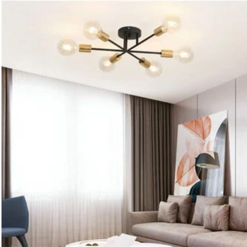 Lâmpada de teto nórdica moderna para sala de estar Ouro de ferro de alta qualidade revestimento multicamadas Ferrugem superficial e prevenção de corrosão E27 suporte de lâmpada padrão internacional Estilo moderno escandinavo Material: ferro, tratamento de superfície galvanizado. Cor: ouro antigo escovado, preto + ouro. Tamanho: como mostrado Número de suportes de lâmpadas: 6 Tipo básico: E27 Tipo de fonte de luz: luz led Tensão: 90V-240 V Certificação: CE, CCC Os tipos de lâmpadas disponíveis incluem: LED / CFL / Incandescente (lâmpada Edison recomendada) Potência máxima recomendada para cada lâmpada: 40-60WSuggested tamanho do espaço: 10?-25?Lugares aplicáveis: sala de estudo, quarto, sala de jantar, banheiro, sala de estar, sala de exposições, cozinha, hotel, etc. Embalagem: 1 lustre (inclui 1 pacote de instalação acessório, sem lâmpada)