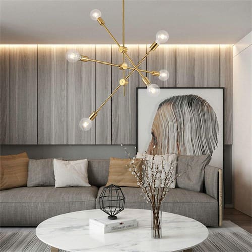 Ouro metal lustre estilo pingente luzCor l de cobre chapeado corpo da lâmpada de ferro anti-corrosão e anti-ferrugemE27 suporte de lâmpada padrão internacionalNome: lustre de metal banhado a cobre nórdicoMaterial: FerroCor: preto, ouroTamanho: como mostradoProcesso: tinta spray de alta temperaturaNúmero de fontes de luz: 4/6Tensão: 95-265VIrradiação: 15?-30?Tipo de fonte de luz: luz ledSoquete: soquete E27 (lâmpada não incluída)Tipo de lâmpada: LED / CFL / lâmpada incandescente (lâmpada Edison recomendada ) Potência máxima recomendada para cada lâmpada: 40WStyle: luxo leve, moderno e simples, Nordic.Applicable places: quarto, sala de jantar, sala de estar, quarto de hotel, etc. Conteúdo do pacote: 1 lustre (incluindo 1 pacote de instalação de acessórios, não incluindo lâmpadas) Modelo: COA21-4 luzes pretas COA21-4 luzes goldCOA21-6 luzes blackCOA21-6 luzes de ouro