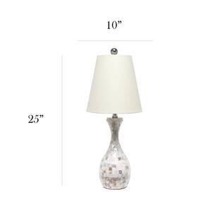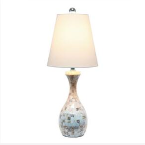 Candeeiro de mesa Elegant Designs LT3336-MOP Coastal Sands Beachy Seashell Mosaic Tile Look com abajur de tecido