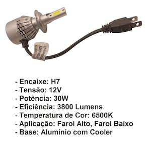 Lâmpada Farol H7 Led Moto 3800lm 12vx30w Aplicaçlão: - Lampadas com encaixe H7 Conteúdo da Embalagem: - 01 Lampada LED H7 Uma Peça Atenção: - Aumente a projeção e alcance de luz com a tecnologia LED, trazendo maior segurança e visibilidade durante a direção noturna - A lâmpada não requer utilização de reator, possui coloração branca e sistema de arrefecimento com cooler, melhora consideravelmente a luminosidade proporcionando muito mais visualização das vias Especificações Técnicas: - Resistente ao Calor Contém um Cooler para resfriamento - Encaixe: H7 - Tensão: 12V - Potência: 30W - Eficiência: 3800 Lumens - Temperatura de Cor: 6500K - Aplicação: Farol Alto, Farol Baixo - Base: Alumínio com Cooler - Design Compacto - Resistente a Água. - Base e Corpo da Lâmpada em Metal - Excelente Resistência a Vibrações e Emissão de Luz Estável - Longa Vida Útil, Dura Até 2 Vezes Mais que as Lâmpadas LEDs Convencionais Marca: Não Informado Ean: 6941655623210