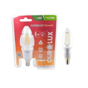 P= Marca: Ouroluxbr /= Cód Interno Ourolux: 20175br /= Modelo: Lâmpada SuperLed Vela Filamento Led Clarabr /br /= Potência: 3wbr /= Tensão: Bivoltbr /= Base: E14br /= Temperatura de Cor: Branco Quente 2.700kbr /= Dimensões: 10.4cm x 3.5cmbr /= Lúmens: 325br /= 50/60Hzbr /= Vida Útil: 15.000 hsbr /= Não Permite Dimerizaçãobr /br /= Equivalentebr /--- Uma Incandescente de 40w / 325lmbr /== Uma Fluorescente de 12w / 325lmbr /br /A linha LED oferece fluxo luminoso diferenciado e com destacada economia de energia, Substituindo a Lâmpada Tradicional Comum./p