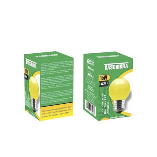 Lâmpada Incandescente Taschibra Bolinha 15W 110V Amarela