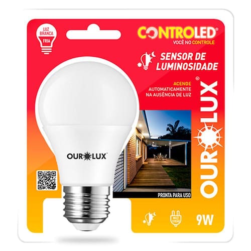 Segurança, proteção e economia para sua família com iluminação inteligente. Indicado para uso comercial e residencial. Lâmpada LED com tecnologia Controled com baixo consumo de energia e pronta para uso sem necessidade de instalar nenhum sensor ou equipamento auxiliar. A lâmpada inteligente com sensor de luminosidade é indicada para ambientes com luz natural, basta colocar no soquete E27 e ligar o interruptor uma única vez, a lâmpada sensor de luminosidade tem fotocélula integrada ao produto que acende quando estiver a noite e apaga quando estiver de dia. Tenha em sua casa ou comércio as lâmpadas inteligentes com sensor de luminosidade para maior segurança e economia. Não Dimerizável Ourolux Cód. 20483
