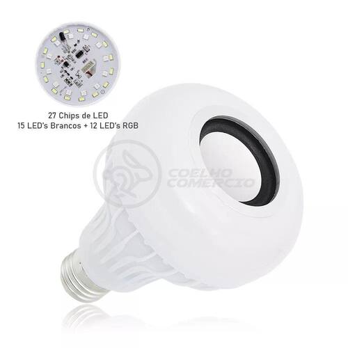 Lâmpada Led 12W E27 Rgb Colorida Com Caixa De Som Bluetooth