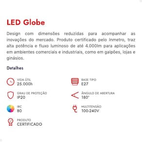 A Lâmpada LED Globe 30W 6500K Branca Fria da Kian, disponível na loja, é uma escolha poderosa para iluminar seus espaços com eficiência e modernidade. Com uma potência de 30W, ela emite uma luz branca fria, atingindo 6500K na escala de temperatura de cor, proporcionando um brilho claro e vívido.