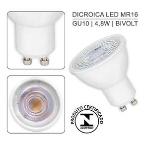 Marca: ctb Tipo: dicroica mr16 led Modelo: bls-4,8s gu10 Potência: 4,8w Base: bipino gu10 Cor: branco quente 3000k ou branco frio 6500k Tensão: 90/265v bivolt Lúmens: 350 lm Ângulo de abertura: 36 Frequência: 60hz Fator de potência: 0.4 Vida média útil: 30.000 h. Irc: 80 Material: termoplástico branco Dimensões: 50mm x 54mm Peso 32g Dimerizável: não Imagens meramente ilustrativas