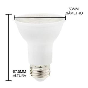 Potência 6,5w Fluxo luminoso 450 lm Irc 80 Ângulo de abertura 40 Vida útil l70 25.000h Temp. De operação -10c / 40c Tensão 90-240v - bivolt Frequência 50/60hz Fator de potência 0.70 Corrente 0.14a Cor - branco quente 3000k ou branco frio 6500k Base e27 Referência par20 Peso 57,9g
