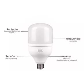 Marca: Black Decker Modelo: BDAP-4000-01 Potencia: 50w Frequencia : 50/60 hz Corrente: 292/173 MA Fator De Potencia : 0,92 Conector: E27 Vida Util: 25.000h