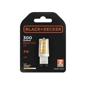As delicadas lâmpadas Bipino LED BLACK+DECKER são produzidas com a mais alta tecnologia em acabamento e componentes, eficiente para lustres e plafons, a lâmpada Bipino LED BLACK+DECKER é uma lâmpada charmosa e elegante, trazendo a melhor sensação da Luz Amarela de 2700K.