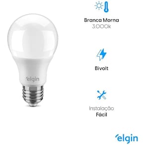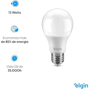Lâmpada Led Bulbo 12 Watts 3000K Bivolt - 4ED28BLM12YU - ELGIN Descrição:Apresentamos a lâmpada LED Bulbo da Elgin com potência de 12 W, tonalidade amarela-quente de 3.000 K, no formato padrão A60 e com tensão bivolt (110/220 V), ideal para substituir lâmpadas incandescentes ou fluorescentes em ambientes residenciais e comerciais. Seu design bulbo clássico permite fácil adaptação em lustres, pendentes, plafons e arandelas, oferecendo iluminação suave, eficiente e aconchegante para salas, quartos, áreas de circulação e ambientes de convivência. Características Técnicas: Potência: 12 W. Temperatura de cor: 3.000 K (branco quente-amarelado). Voltagem: Bivolt (110/220 V) — adapta-se automaticamente à rede elétrica brasileira. Formato: A60 (bulbo padrão doméstico). Marca: Elgin. Indicação de uso: Ambientes internos residenciais ou comerciais que buscam conforto visual, iluminação aconchegante e baixo consumo de energia.