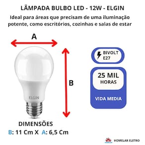 Lâmpada Led Bulbo 12W 6500K Bivolt Elgin