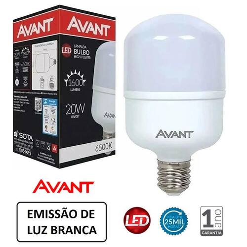 Lâmpada Led Bulbo 20w Luz Branca 6500k Bivolt Avant A lâmpada Bulbo HP é indicada para iluminação de grandes áreas e retrofit de lâmpadas com alta potência. PROPRIEDADES Corpo da lâmpada e difusor em policarbonato. Não aquece o ambiente não emite infravermelho . Possui driver interno isolado. Não desbota objetos não emite ultravioleta . Composição livre de mercúrio. Baixo consumo de energia em relação as lâmpadas incandescentes e fluorescentes. Alto fluxo luminoso. CARACTERÍSTICAS DE FUNCIONAMENTO 20w 1600 lm Temperatura ambiente: -5C a 40C. Tensão de entrada: 100V a 240V. Disponíveis na temperatura de cor BR 6500K. IP20 Não Dimerizavel Anglo de Abertura: 200 IR:70 Uso Interno DIMENSÃO mm : 80 x 150 ED-BULBO-HP-E27-BR6500K-20W-BIVOLT 25.000 horas L70 Bivolt 100v-240v Peso: 125g Ean: 7899825506117