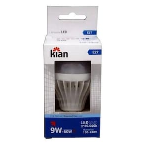 Lampada led bulbo economic kian 9w 6k e-27 bivolt As linhas de lâmpadas led kian foram desenvolvidas para o uso geral, como residências, comércios e escritórios. Com os formatos e as dimensões das lâmpadas tradicionais é possível a substituição direta para as lâmpadas led kian. Disponíveis em diversas potências, formatos e tonalidades de luz.ângulo de abertura: 180 100-240v Led smd Irc 80 Vida 25.000h Cor: 6kbulbo translúcido, evitando ofuscamento; 1 ano de garantia; Dura até 2,5 vezes mais que uma lâmpada fluorescente compacta e Projeta a luz para o local a ser iluminado, ângulo de facho de 180.equivalência: 60w Temp. Cor da luz: 6.000k Fluxo luminoso: 1.080lm Código barras: 7899710003158 Caixa master: 10 unid. as linhas de lâmpadas led kian foram desenvolvidas para o uso geral, como residências, comércios e escritórios.