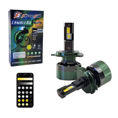 Lampada led camaleao com estrobo 3000k - 10000k h4 via aplicativo Lâmpada led camaleão h4 3000k a 10000k , controle via app com função estrobo Personalize a temperatura de cor do seu farol com tecnologia avançada e estilo único. A led camaleão permite ajustar a tonalidade da luz entre 3000k amarelo e 10000k super branco diretamente pelo aplicativo no celular, oferecendo versatilidade para qualquer condição de clima ou preferência estética. Especificações técnicas: soquete: h4 compatível temperatura de cor ajustável: de 3000k a 10000k controle via aplicativo bluetooth função estrobo pisca alto brilho e foco definido voltagem: 12v sistema canbus: sim evita erro no painel em grande parte dos veículos instalação plug & play Diferenciais: ideal para quem deseja visual único e ajustável permite escolher a cor mais adequada para neblina, chuva, estrada ou uso urbano excelente dissipação de calor Conteúdo da embalagem: 1 par de lâmpadas led camaleão Prazo de : 6 meses