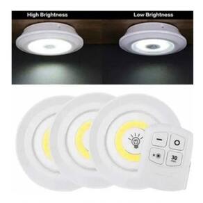 Lampada Led Luminaria Sem Fio Com Controle Remoto Kit C/ 3 Características: Controle de 2 vias: O controle remoto IR permite que você ajuste o brilho em 2 níveis e controle de tempo para desligar a luz em 30 minutos sem fio. Você também pode ligar / desligar a luz do disco, tocando no interruptor na lente das luzes.