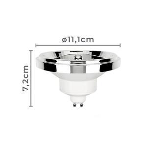 Dimensões AxLxP (mm): 72x111x111Garantia: 1 ano junto ao fabricanteReferência: 1152 (2700K)Voltagem: 220VFator de Potência:>= 0,7Fluxo Luminoso: 720 lúmensIRC (Índice de Reprodução de Cor): 95Potência: 12WSoquete: GU10Vida Útil: 25.000 horasModelo/Tecnologia: LEDTipo: AR111Temperatura da Cor: 2700K - Branco QuenteDimerizável: SimGrau de Proteção: IP 20Ângulo de Abertura: 24