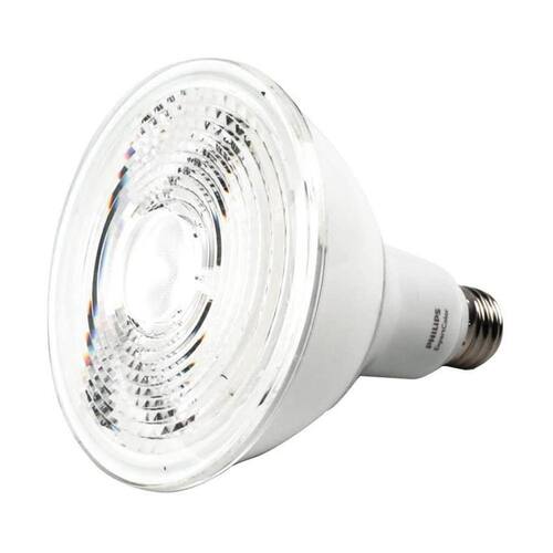 Lâmpada Led Philips PAR38 14W bivolt base E27 (escolher cor da luz no momento da compra)Garantia: 5 anosCaracterísticas da lâmpada:- Formato - PAR38- Base/encaixe - E27- Não dimerizável- Voltagem - Bivolt 100 - 240 V- Potência em watts - 14W- Equivalente em Watts - 90WCaracterísticas da luz:- Emissão de luz - 1.250 lumens- Índice de reprodução de cor (CRI) - 80- Vida útil: 25.000 horasA Philips está investindo em soluções de eficiência energética. Faça um upgrade de luminárias em trilho e iluminação de realce com nossos Spots para uma economia de energia instantânea com qualidade incomparável. Disponível em vidro e em plástico, os LED Par20s da Philips são a opção ideal para substituição de soluções convêncionais (halógenas).BenefíciosAté 80% de economia de energia em comparação a lâmpadas halógenas e custos de manutenção mais baixosFácil de trocar/adaptar. Ampla compatibilidade com transformadores"Encaixe perfeito" na maioria das luminárias de halogênioCaracterísticasLED com vida útil de até 25.000 horasAparência otimizada do produtoDisponível nas opções CRI 80 ou CRI 90Garantia de componentes limitada de 3 a 5 anos, dependendo das horas de operaçãoA cor aquece quando a luminosidade é reduzida (2.700 K a 2.200 K)AplicaçõesHotéis, restaurantes, bares, cafés, museus, lojasSaguões, corredores, escadas, banheiros, recepções, exposições, armários-vitrine Ean: 8718696741429