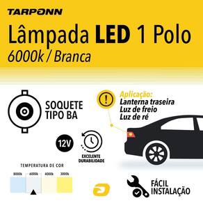 Características:baixo consumoDurabilidade superiorIluminação amarelaFácil instalaçãoAplicação: Luz de ré e lanterna traseiraO melhor custo-benefício em iluminação automotiva. Conheça a Lâmpada Tarponn LED 67 Ba15S-3014-22SMD 1 Polo 12vGraças aos seus 22 LEDS SMD 3014, oferece uma ótima iluminação para o seu carro, evitando possíveis colisões traseiras. Além disso, por ser uma lâmpada de 1 Polo 67, com encaixe Ba15S, pode ser instalada em luz de ré e lanterna traseira..E tem mais vantagens, possui baixo consumo e a sua durabilidade é bem superior comparado com as lâmpadas convencionais.Descubra mais da Lâmpada Tarponn LED 67 Ba15S-3014-22SMD 1 Polo 12vFicha técnica:Cor: BrancaEncaixe: Ba15STensão: 12vEquivalência: 21wTipo de LED: SMD 3014Linha: StandardFluxo luminoso: 138,6 ImQuem somos:Somos a Mega GT especialistas na linha de Acessórios Automotivos e Utilidades para a sua casa. Buscamos sempre oferecer para o nosso cliente a melhor opção com o preço justo na sua compra.4- Tem garantiaSim, os produtos têm garantia de 3 meses. Ean: 7900469453207