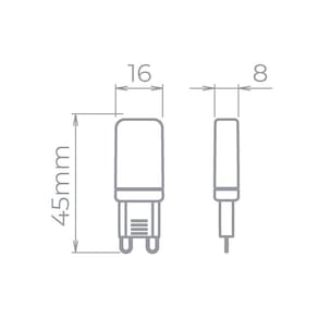 Especificaçõesfrequência: 50/60 HzDimensões AxLxP mm : 45x16x8Garantia: 2 anos junto ao fabricanteFator de Potência: 0,7IRC Índice de Reprodução de Cor : 80Potência: 1,7WSoquete: G9Vida Útil: 15.000 horasModelo/Tecnologia: LEDTipo: BipinoDimerizável: NãoÂngulo de Abertura: 280Itens inclusos:1 Lâmpada